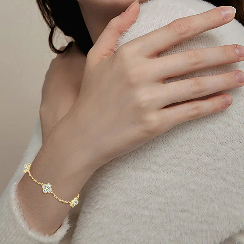 18k Gold Plated Moissanite Clover Jewellery Set for Women