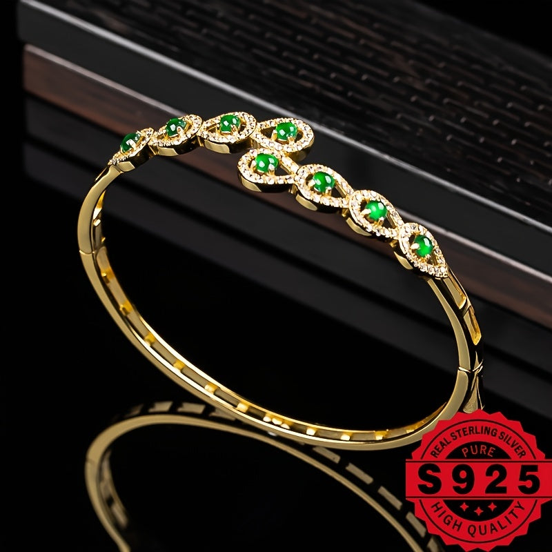 A refined and elegant bracelet designed to enhance every woman's natural grace featuring a full green Grade A ice seed stone inlaid into high quality 925 sterling silver