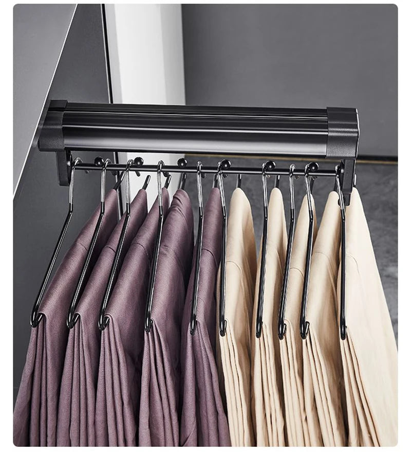 Space-saving: Retractable design that slides in and out effortlessly, creating more room in your wardrobe.