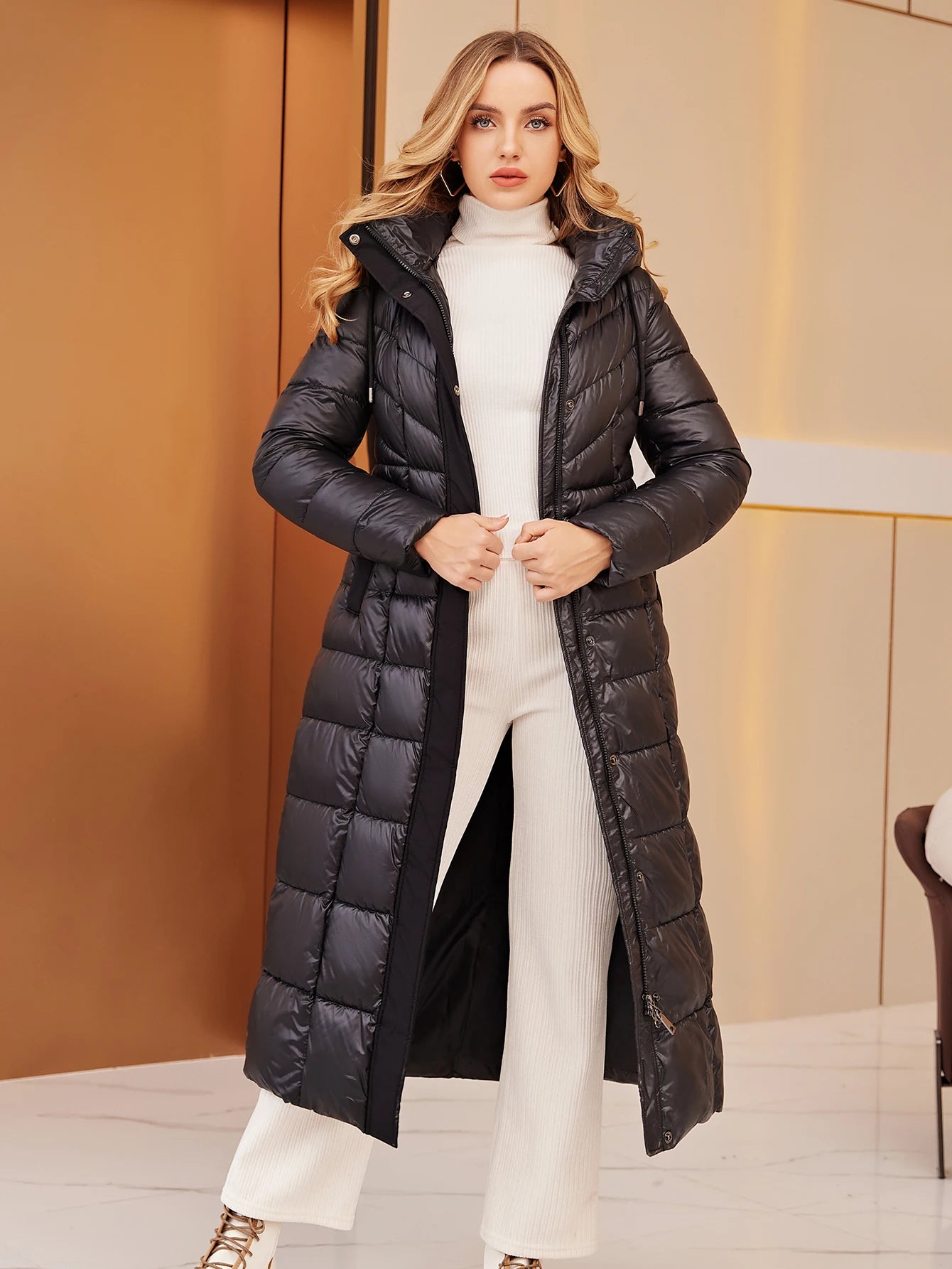 Stay warm and stylish this winter with the Astrid 2022 New Women's Coat. This long down jacket combines functionality and fashion, featuring a stand-up collar and a hooded design that provides ultimate protection against the cold. The adjustable drawstring allows for a custom fit, ensuring comfort while keeping the chilly winds at bay.