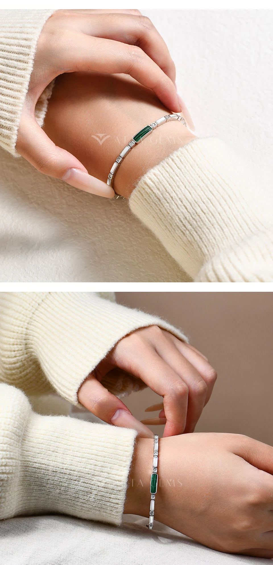 ATTAGEMS LUXURY SYNTHETIC MALACHITE MOISSANITE BRACELET