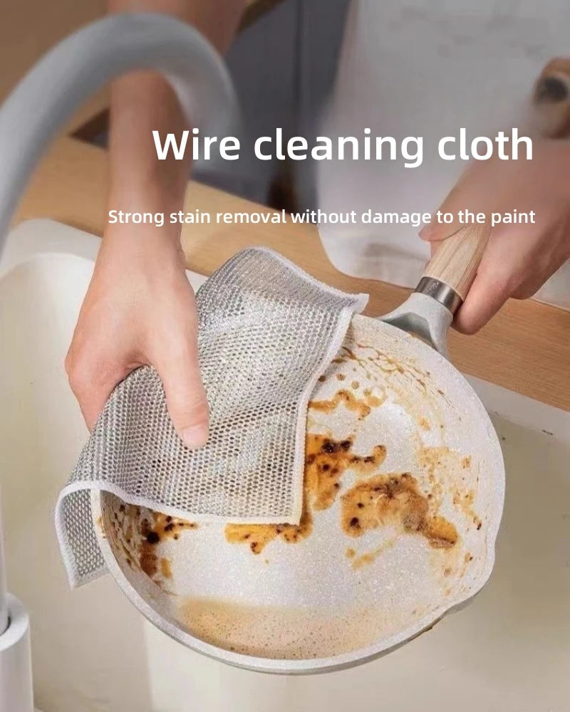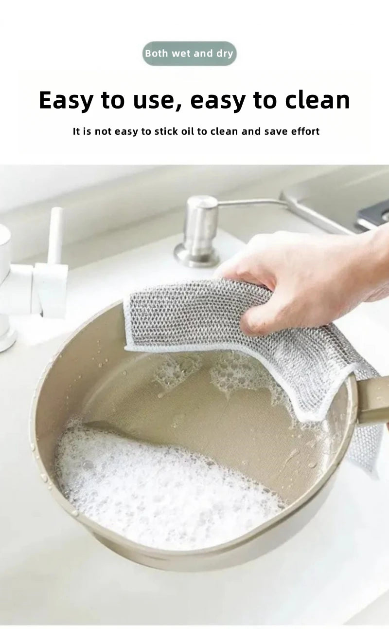 Unmatched Cleaning Power: The double-sided design features a tough metal steel wire surface that effortlessly removes grease, grime, and burnt-on food from pots, pans, and dishes, leaving them spotless.Durable and Long-Lasting: Made from high-quality materials, these cloths are built to withstand heavy-duty cleaning, making them a reliable choice for your kitchen.