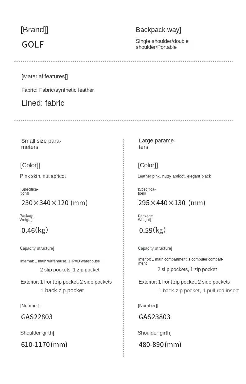 GOLF Backpacks Woman Anti Theft Laptop Backpack Elegant School