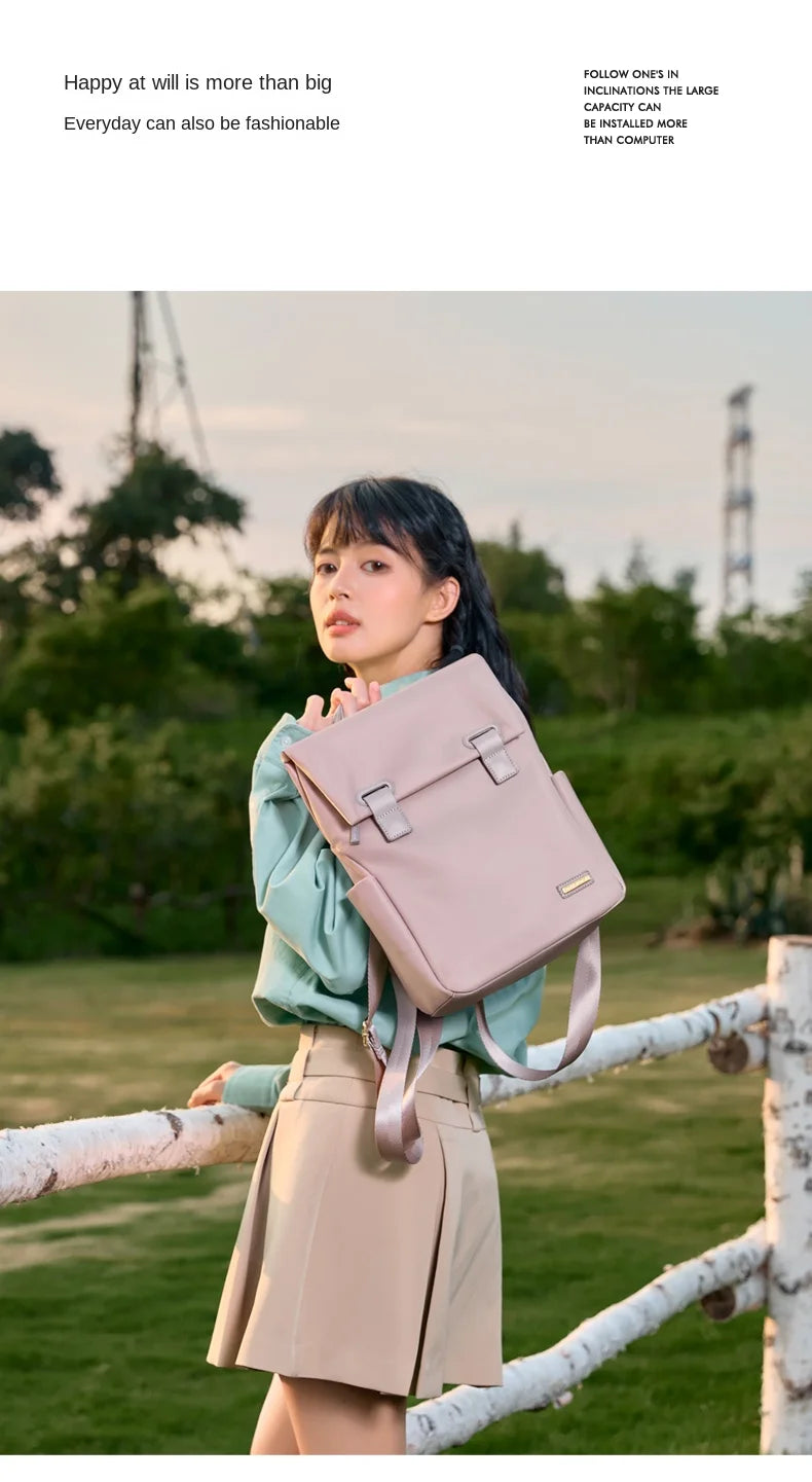 A refined and practical backpack designed for women, combining safety, functionality, and a sophisticated style