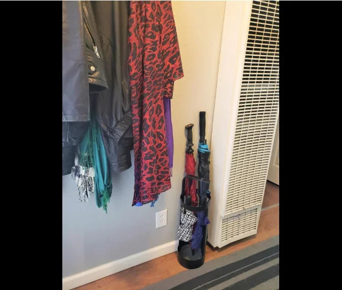 Its slim design saves space while providing a stylish way to keep umbrellas neat tidy and within reach