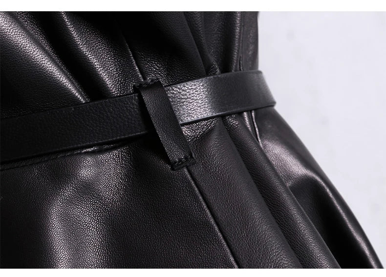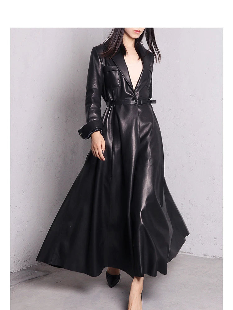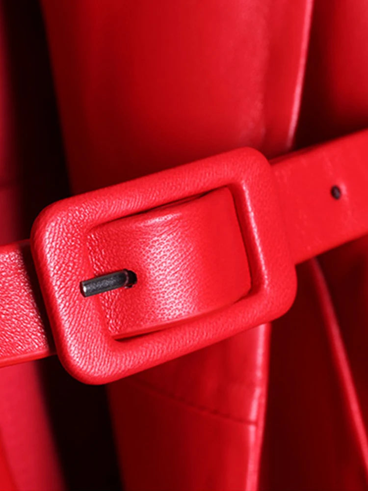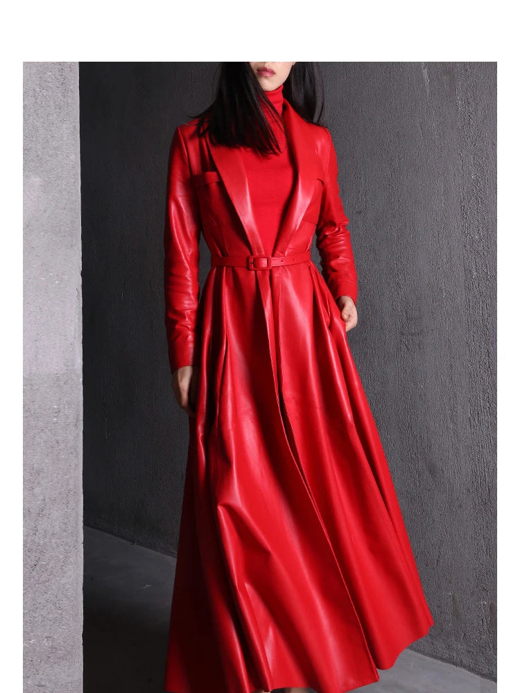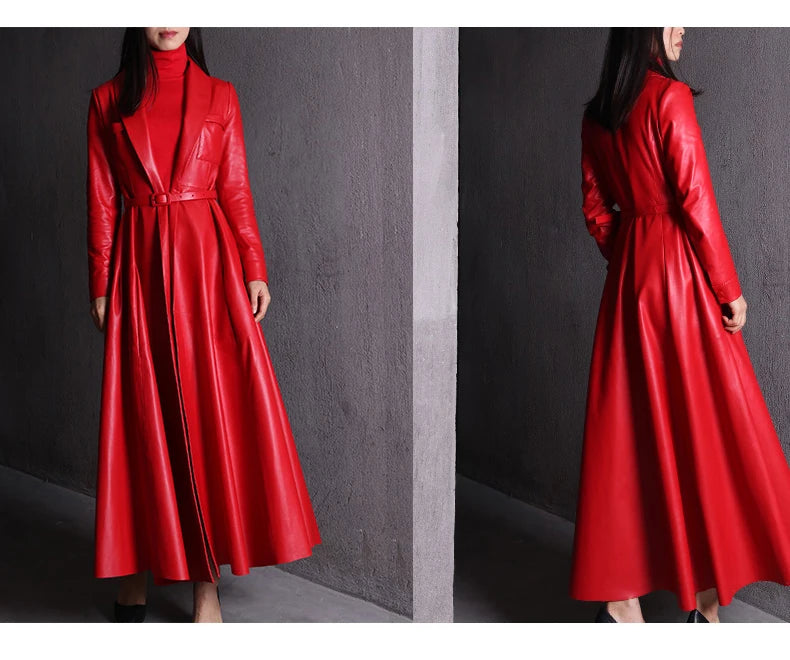 Elevate your style with the Nerazzurri High Quality Red Black Maxi PU Leather Trench Coat. This stunning overcoat features an elegant, extra-long design that combines sophistication with modern fashion, perfect for making a bold statement.