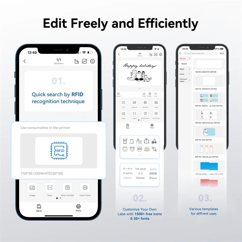 Print directly from iOS Android and PC devices using the dedicated NIIMBOT app
