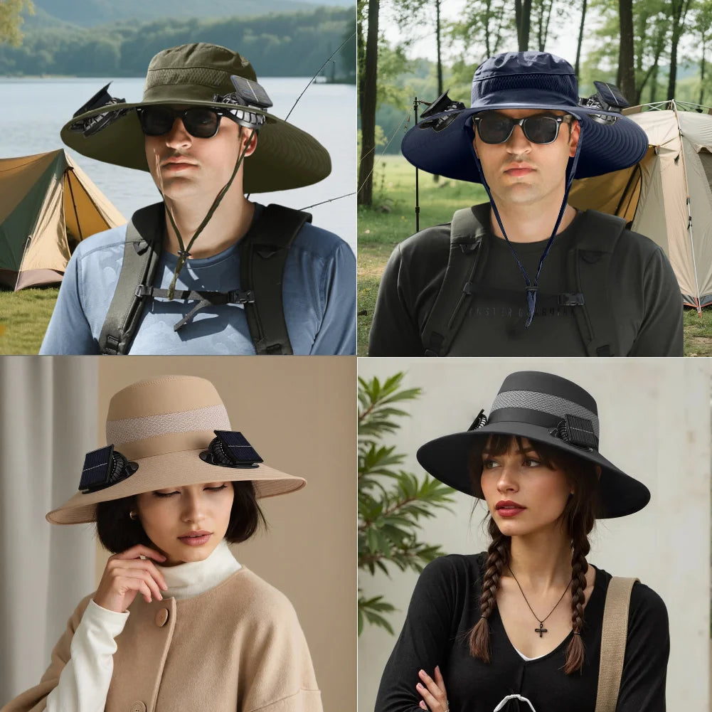 OUTDOOR SOLAR MULTI-PURPOSE FAN CAP – ADJUSTABLE THREE-SPEED COOLING WITH USB CHARGING FOR ACTIVE SUN PROTECTION