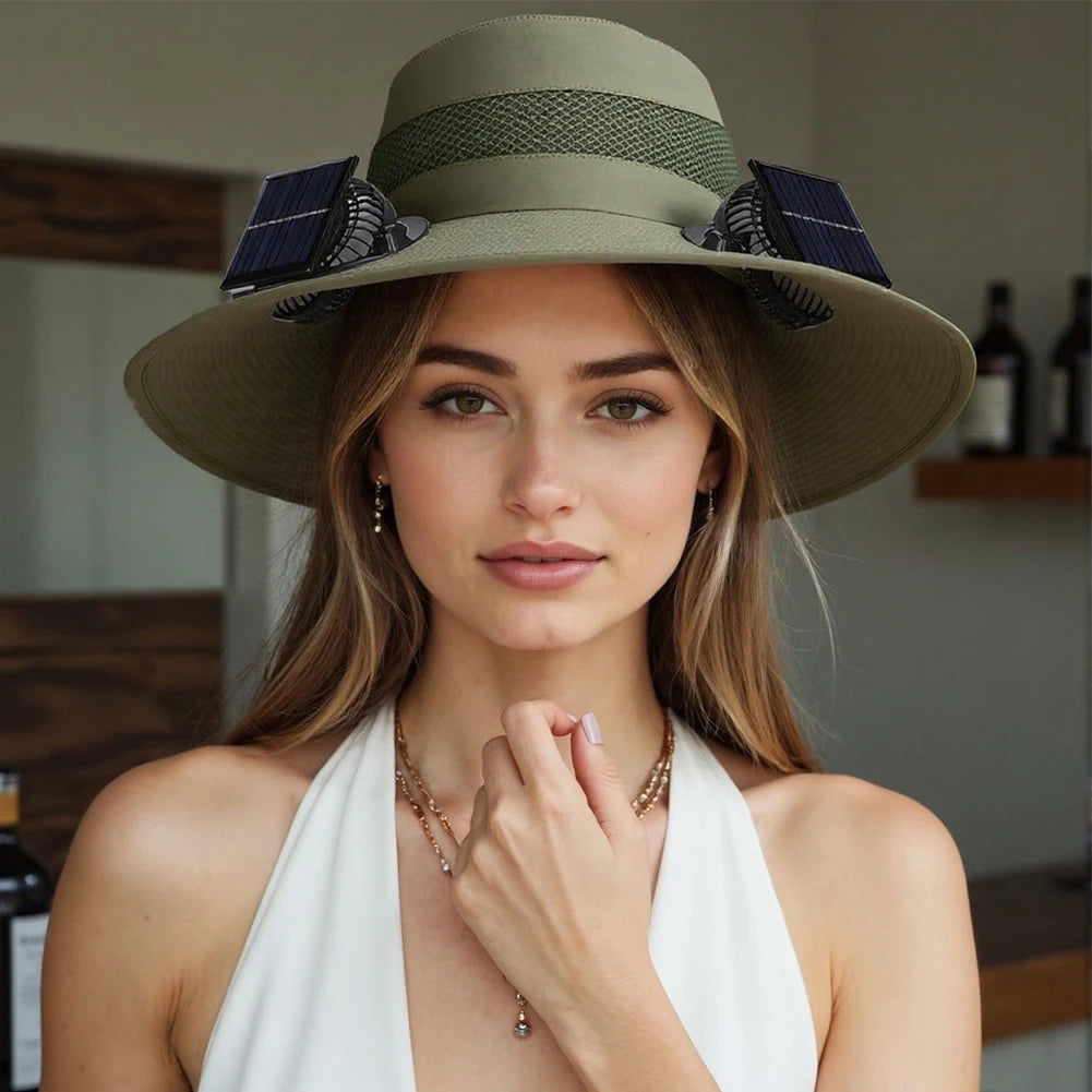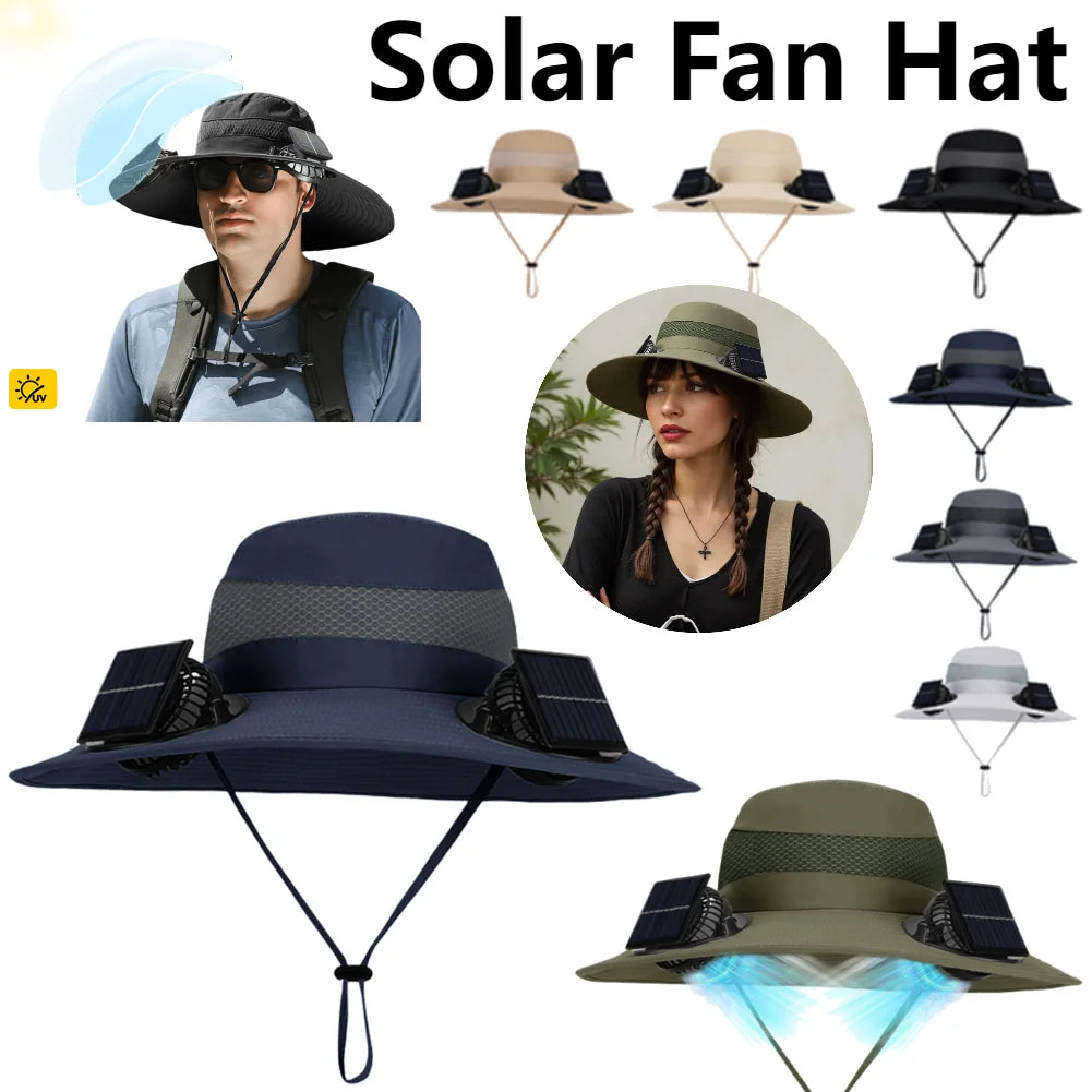 Equipped with a built-in solar panel this advanced fan cap harnesses sunlight to power a compact fan offering hands-free cooling during outdoor activities