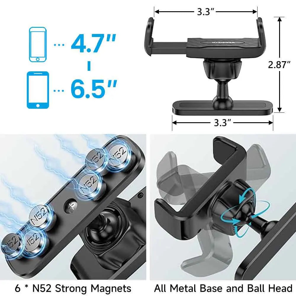 Powerful Magnetic Grip – Designed with advanced MagSafe compatibility, this holder ensures a firm, wobble-free attachment to your iPhone 15, 14, 13 or any smartphone between 4.7–6.5 inches.