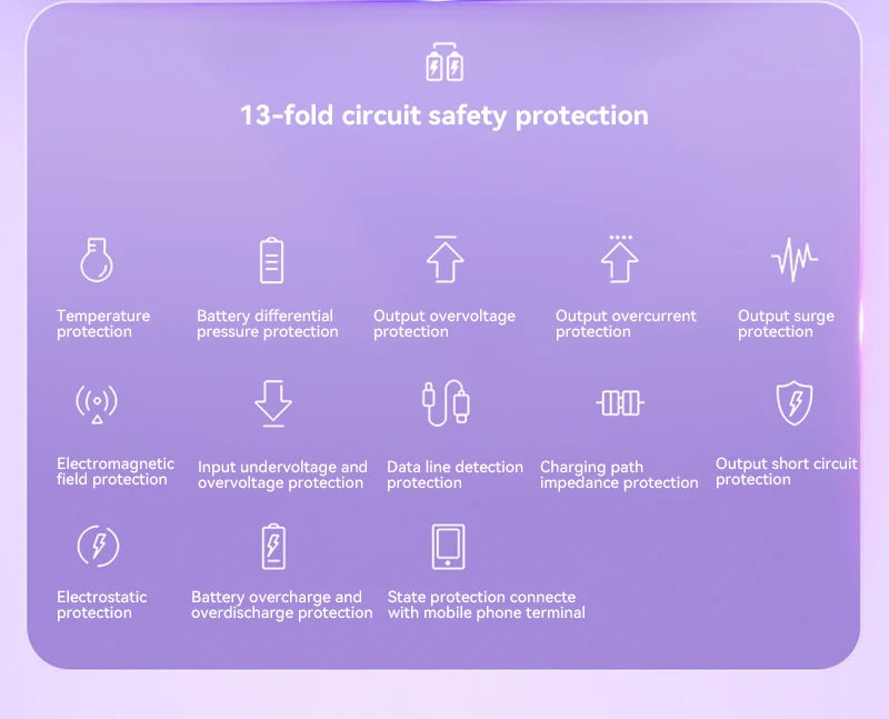 Built-in safeguards protect against overcharging, overheating, and short-circuiting.