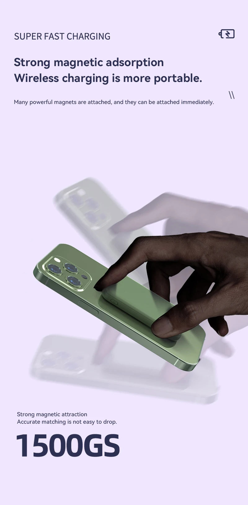Effortlessly attach your phone for wireless charging, ensuring a secure connection every time.