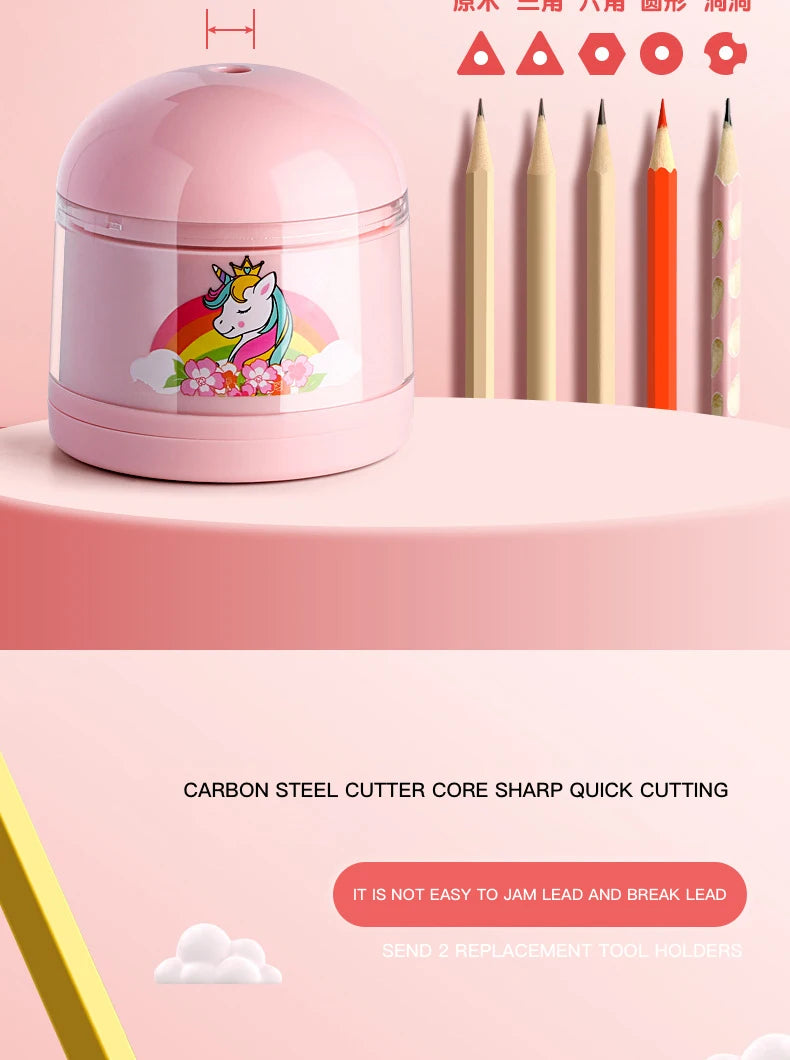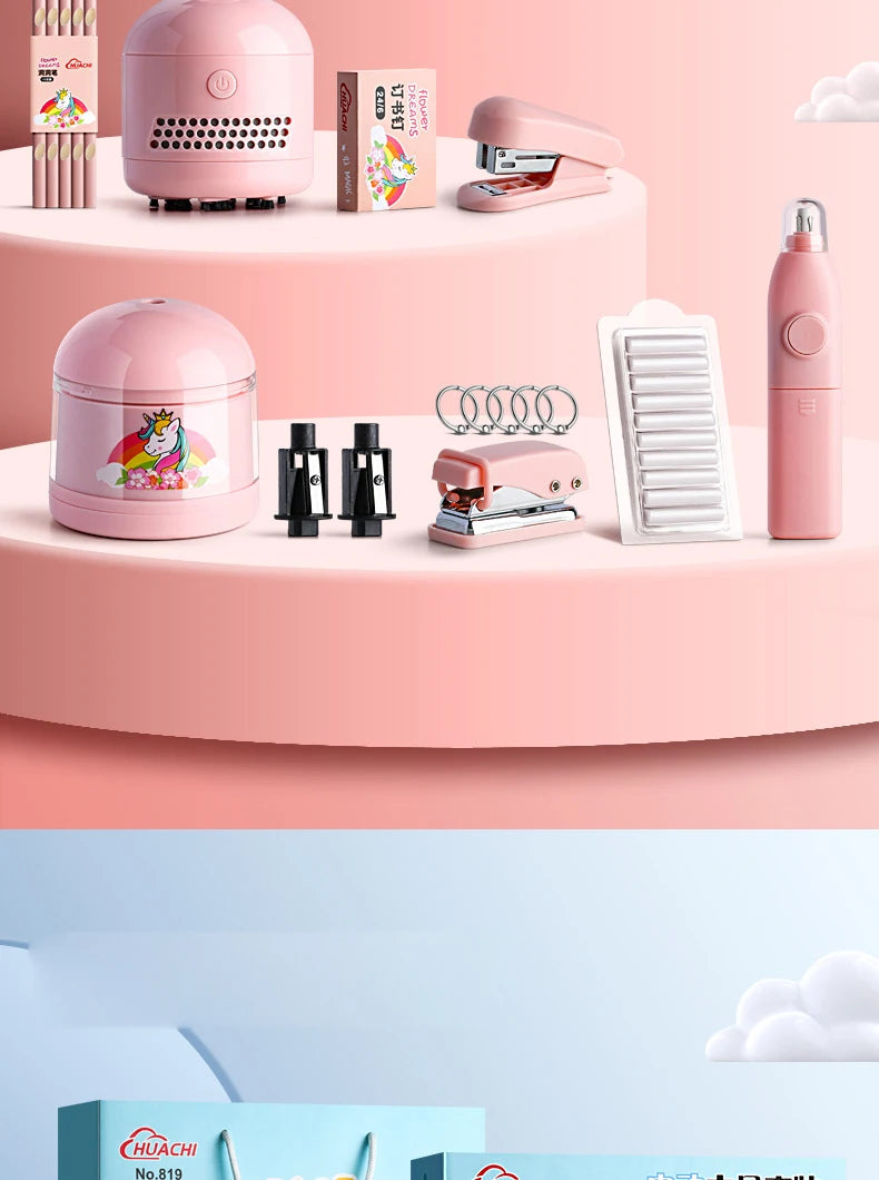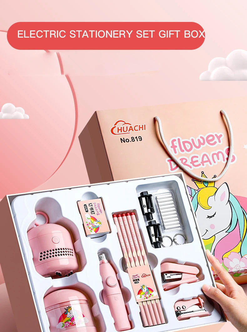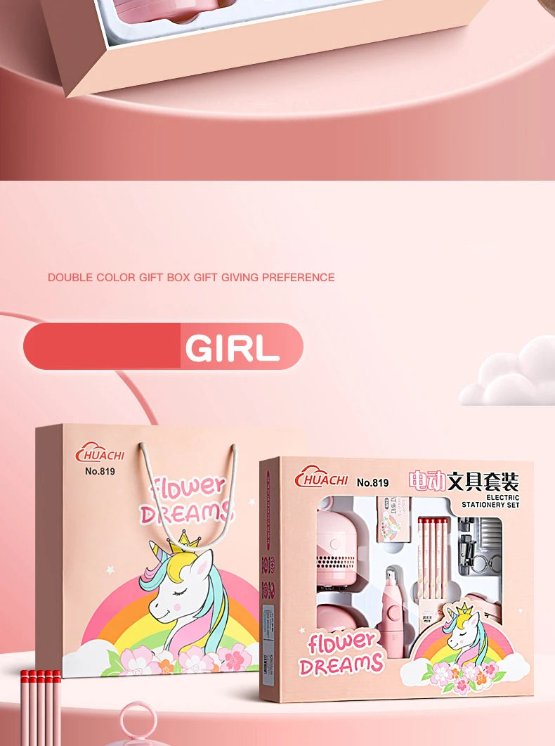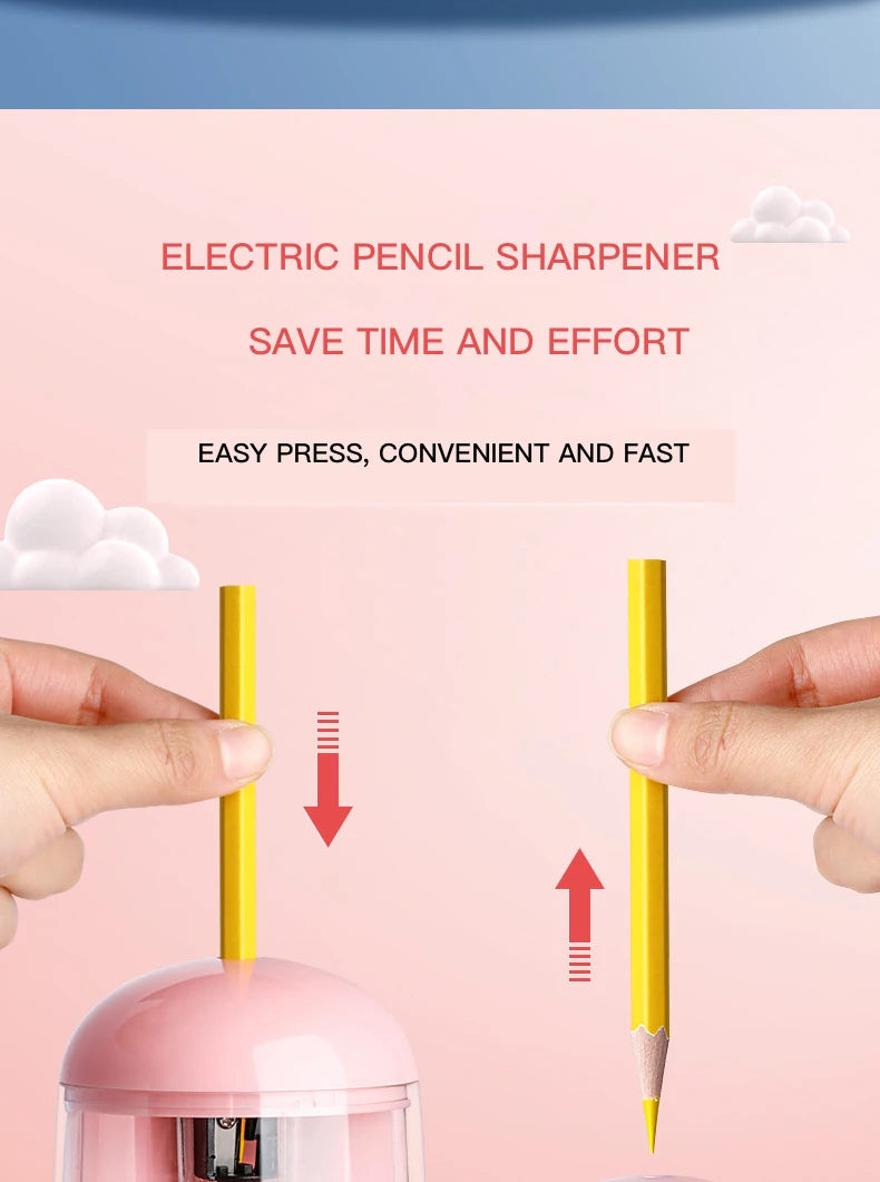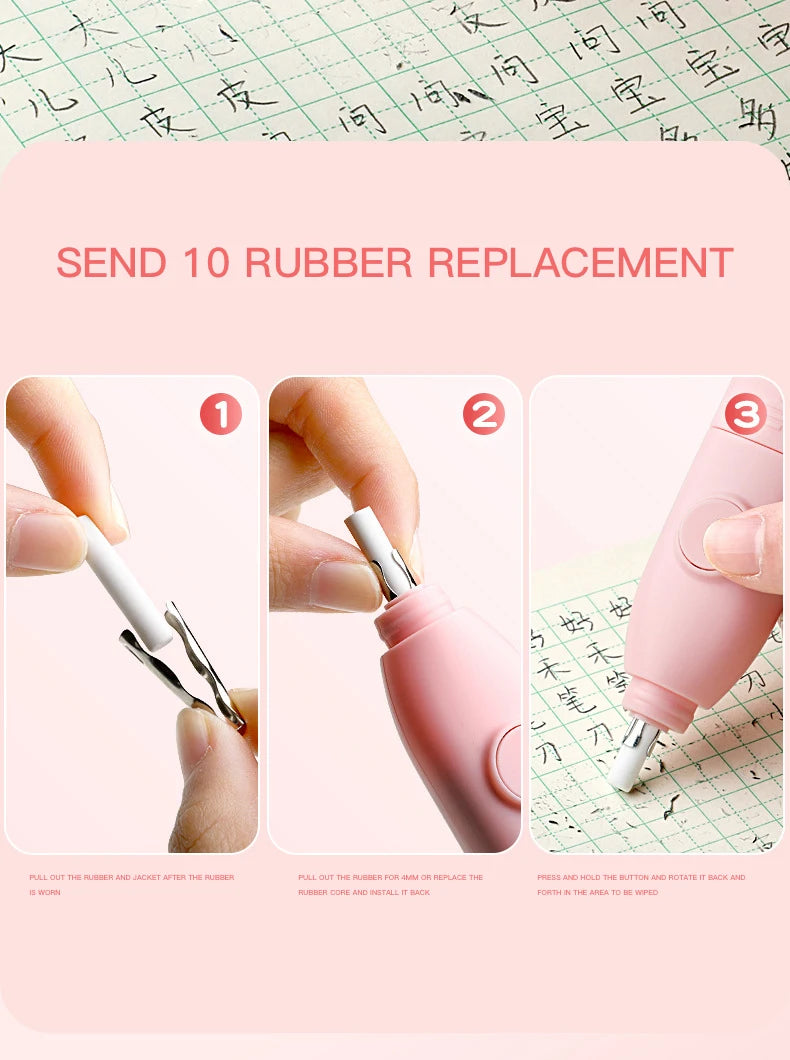 Equipado com uma borracha elétrica para ajudar as crianças a fazer correções limpas e a manter os trabalhos escolares organizados
