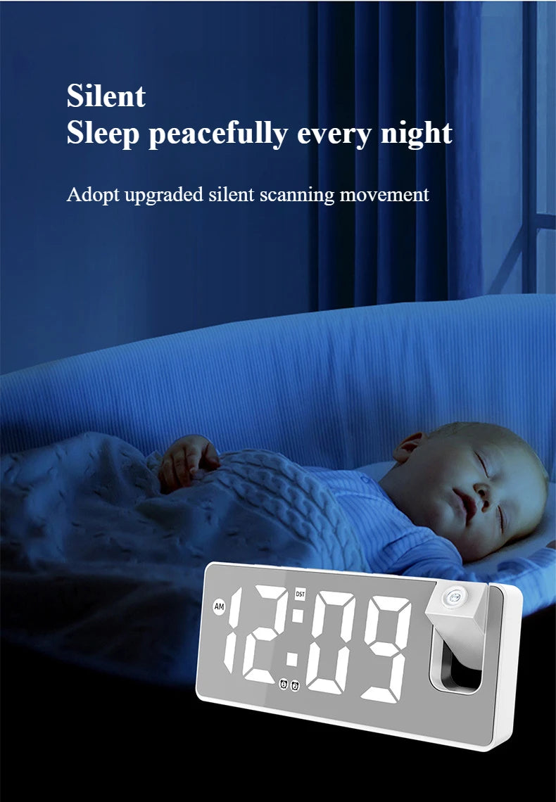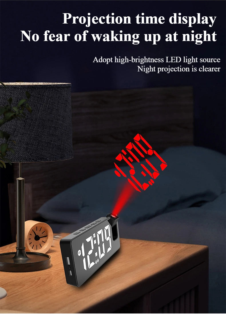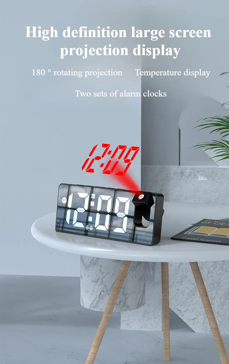 Combina o design de espelho de exibição LED de projeção de tempo e alarmes fiáveis num dispositivo compacto adequado para qualquer estilo de vida ou ambiente