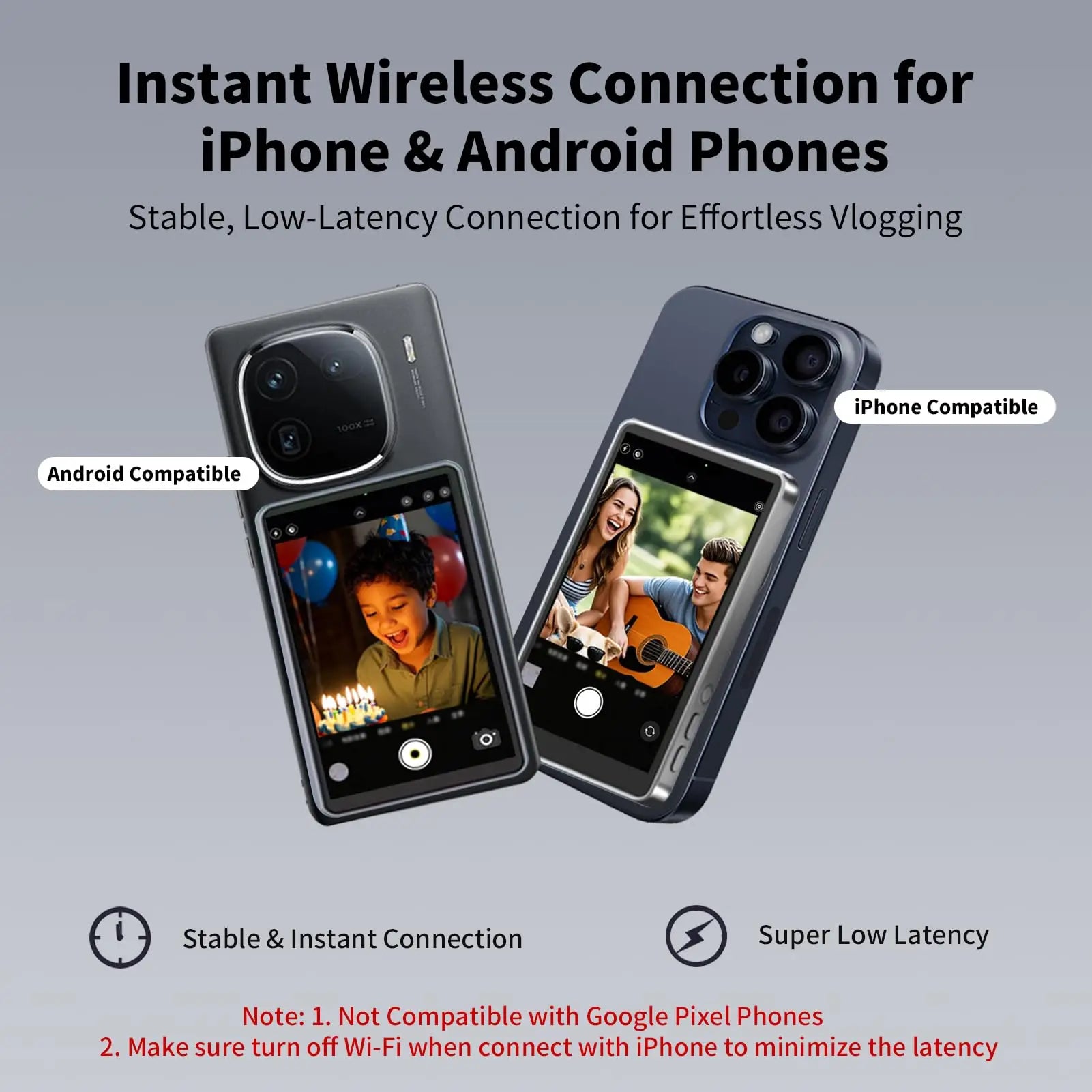 Não importa se está a gravar vídeos, a fazer transmissões em direto ou a tirar selfies, este ecrã compacto e magnético oferece controlo total sobre o enquadramento, a focagem e os ângulos — sem a necessidade de uma segunda pessoa.