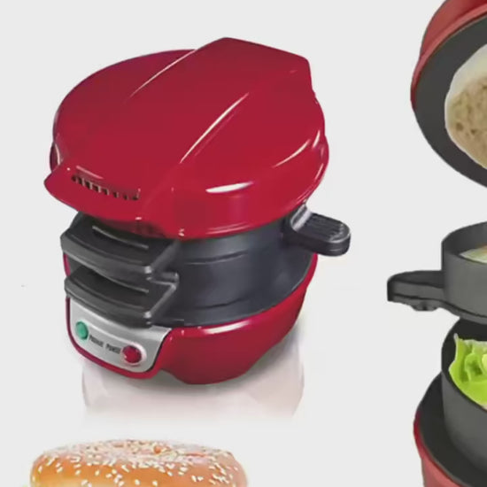 Torradeira portátil para hambúrguer, sanduíche, omelete e pequeno-almoço.